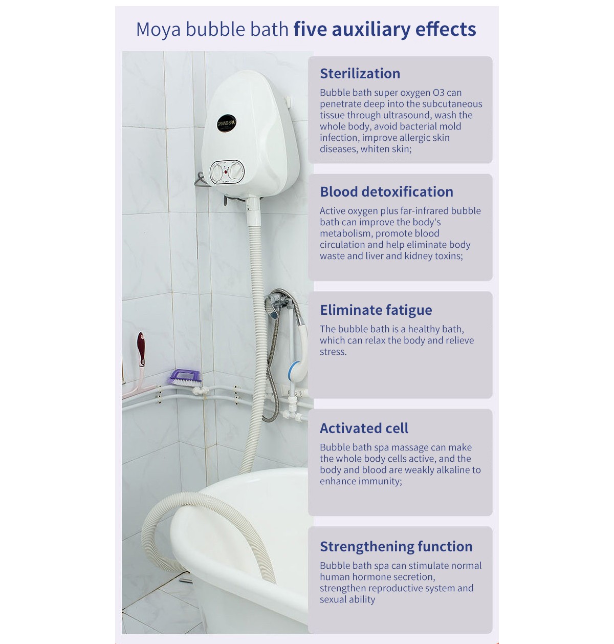 O₃ anioner | 1 000 000 O₃ Lastede luftbobler per sekund som forbedrer kvaliteten på badevann og omkringliggende luft på badet. | Nil | Nil | Nil |