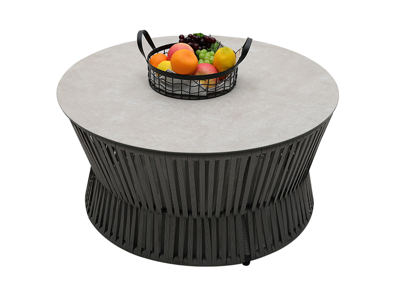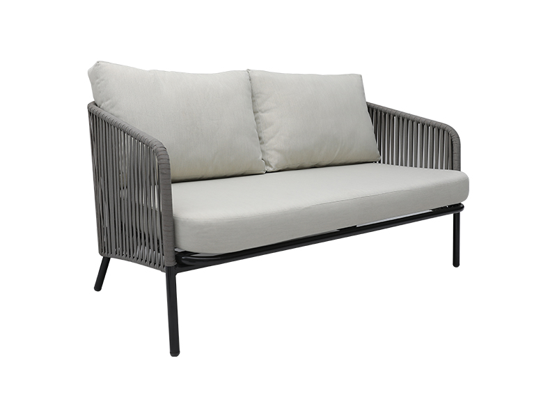 Spesifikasjon | Aluminiumsramme med flat tau vevd, 10 cm setepute med svamp inni, ryggpute med fiberfylling inne, 230g/m2 polyesterpute stoff; enkeltstol: L82*W75*H69cm, 2 stk; Loveseat Chair: L82*W142*H69cm, 1pc; Saliebord: ∮85*H43cm, 6mm glass basert på keramikk; Sidebord: ∮42*H48cm, 6mm glass basert på keramikk |